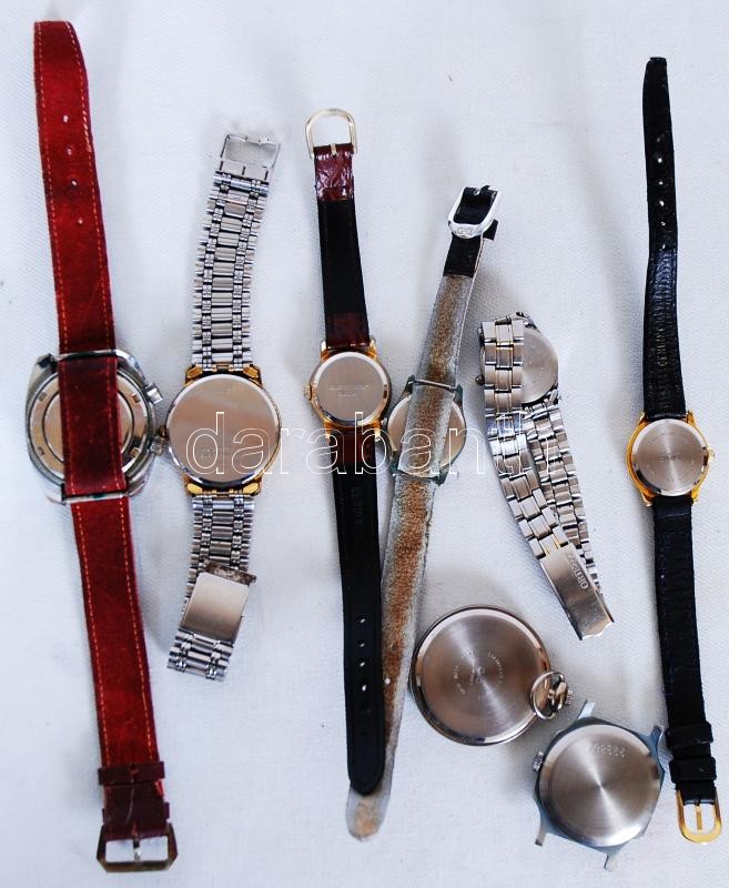 Beschreibung: 7db működőképes kvarc, ill. mechanikus karóra és egy kvarc zsebóra /