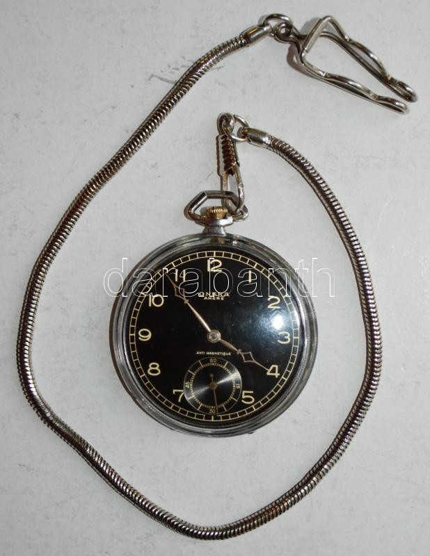 Beschreibung: Oneka Ancre férfi másodperc mutatós zsebóra lánccal, 15 köves, működőképes, szép állapotban