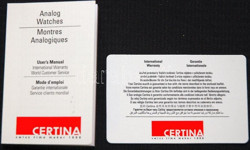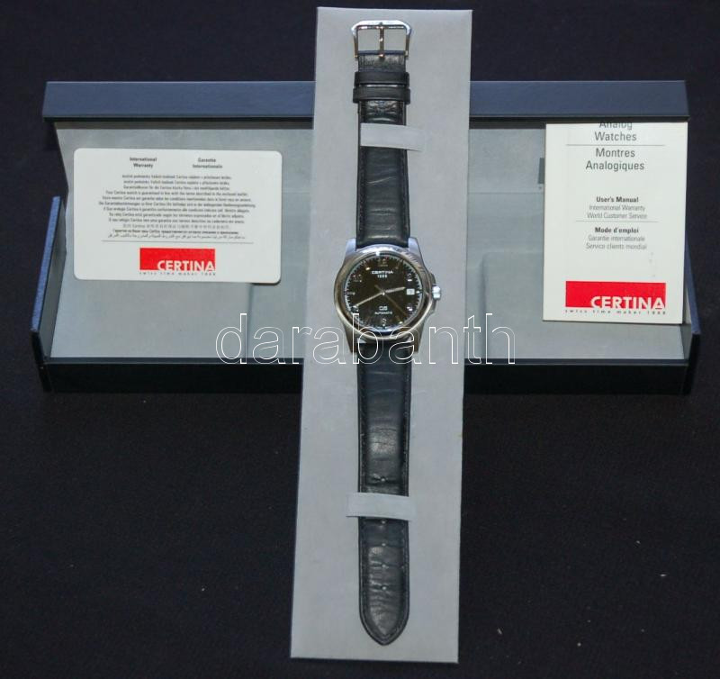 Svájci Certina márkájú automata önfelhúzós naptáros férfi karóra, eredeti sérült díszdobozban, kézikönyvvel, bizonylattal, működőképes és alig használt állapotban!