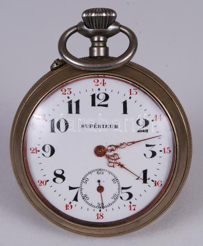 Supérieur pocket watch with flawless porcelain dial with an art nouveau portrait of lady on bicycle on the back case, works well