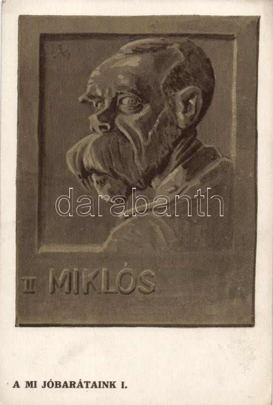 II. Miklós, A Mi Jóbarátaink I., Borsszem Jankó, Kner Izidor kiadása https://www.darabanth.com/de/177-Fernauktion/177.0/Ansichtskarten/Herrscher-Politiker-Konigshauser~3300109/II-Miklos-A-Mi-Jobarataink-I-Borsszem-Janko-Kner-Izidor-kiadasa~II622600