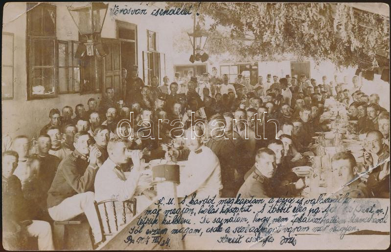 Hungarian soldiers in a restaurant in Budapest, photo (fa) https://www.darabanth.com/de/177-Fernauktion/177.0/Ansichtskarten/Militaria~3300092/Hungarian-soldiers-in-a-restaurant-in-Budapest-photo-fa~II621954