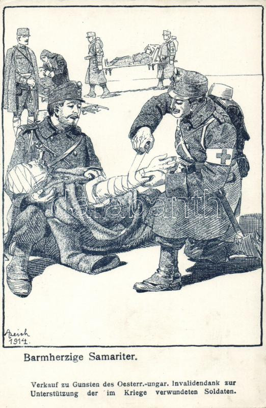 K.u.k. army WWI, Good Samaritan, red cross, military propaganda, s: Az... https://www.darabanth.com/de/177-Fernauktion/177.0/Ansichtskarten/Militaria~3300092/Kuk-army-WWI-Good-Samaritan-red-cross-military-propaganda-s-Azeich~II620404