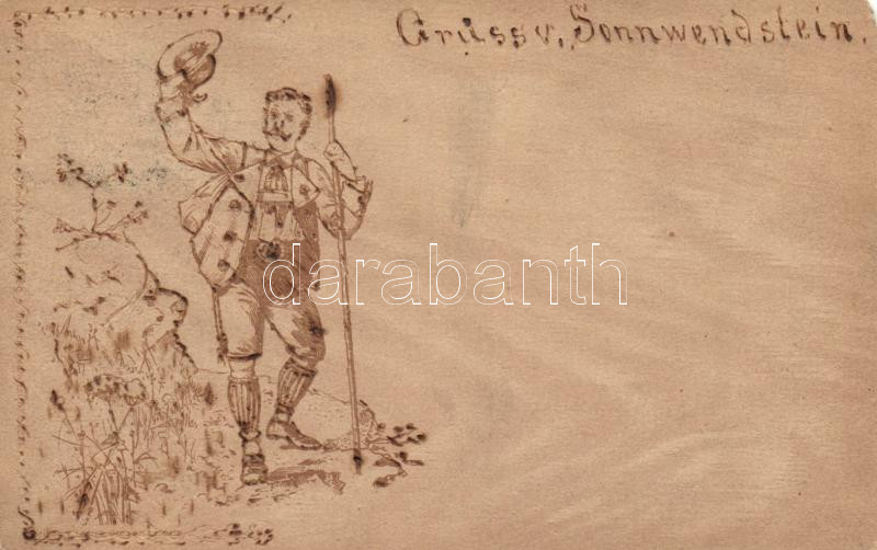 1898 Sonnwendstein, hand-crafted drawing, wooden look card (EM) https://www.darabanth.com/de/177-Fernauktion/177.0/Ansichtskarten/Osterreich~3300043/1898-Sonnwendstein-hand-crafted-drawing-wooden-look-card-EM~II617644