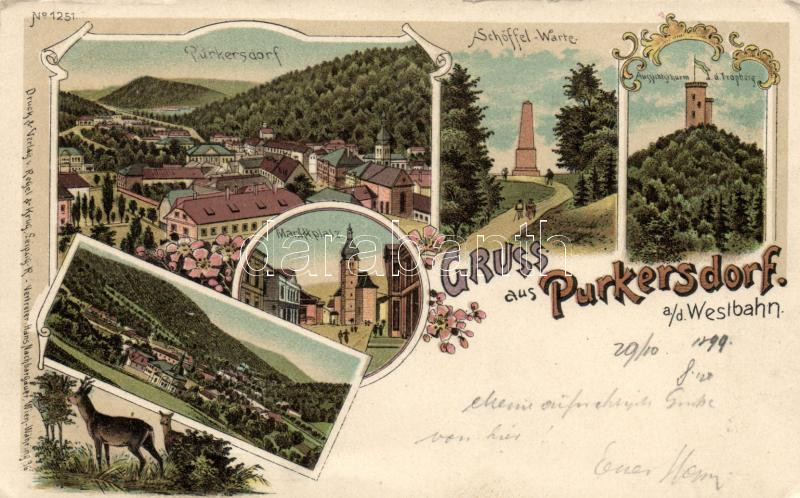 1899 Purkersdorf Markt square, Schöffel-Warte, observation tower (EK) https://www.darabanth.com/de/177-Fernauktion/177.0/Ansichtskarten/Osterreich~3300043/1899-Purkersdorf-Markt-square-Schoffel-Warte-observation-tower-EK~II620633