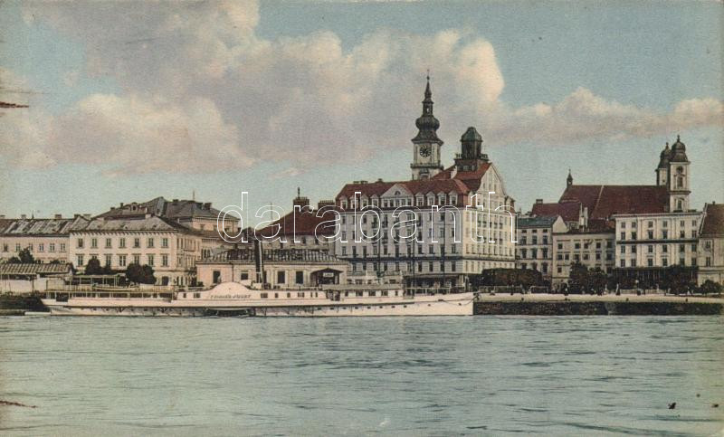 Beschreibung: Linz steamship station with Hotel Archduke Charles, SS Franz Josef