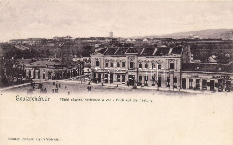 Beschreibung: Gyulafehérvár Main square, Shop of Kohn Elias (EK)