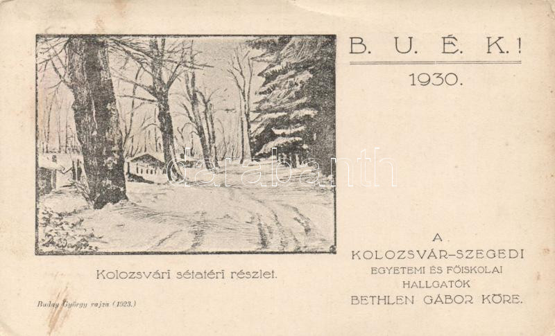 Beschreibung: Kolozsvár promenade, New Year, the Bethlen Gábor club of the University and College of Kolozsvár-Szeged, s: Budai György