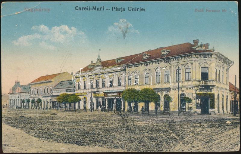 Nagykároly Deák square, shops (EB) https://www.darabanth.com/de/177-Fernauktion/177.0/Ansichtskarten/Siebenburgen~3300007/Nagykaroly-Deak-square-shops-EB~II623570