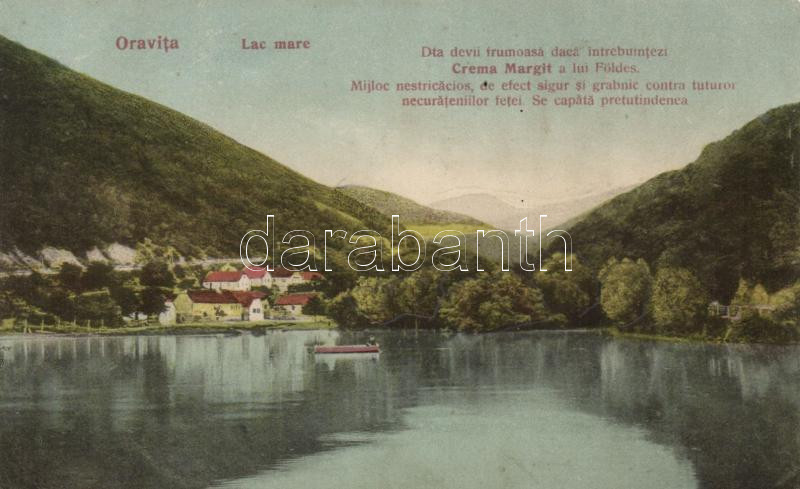 Beschreibung: Oravicabánya lake, the advertisement of Margit Cream of Földes (gluemark)