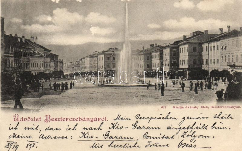 1898 Besztercebánya, fountain, the shops of Árpád Holesch and József K... https://www.darabanth.com/de/177-Fernauktion/177.0/Ansichtskarten/Slowakei~3300010/1898-Besztercebanya-fountain-the-shops-of-Arpad-Holesch-and-Jozsef-Kohn~II620180