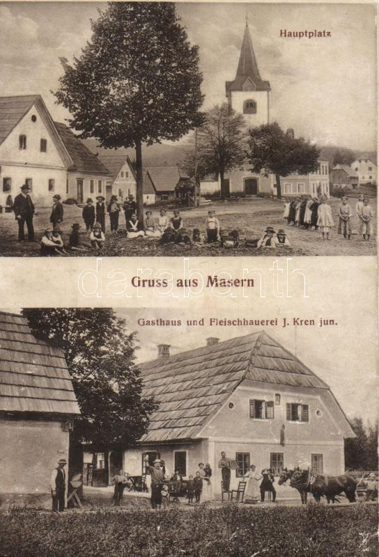 Grcarice Main square, inn and J. Kren butcher (wet damage) https://www.darabanth.com/de/177-Fernauktion/177.0/Ansichtskarten/Slowenien~3300070/Grcarice-Main-square-inn-and-J-Kren-butcher-wet-damage~II620328