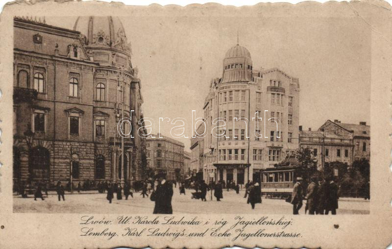 Lviv Karl Ludwig and Jagello street, tram (small tear) https://www.darabanth.com/de/177-Fernauktion/177.0/Ansichtskarten/Ukraine~3300074/Lviv-Karl-Ludwig-and-Jagello-street-tram-small-tear~II618473