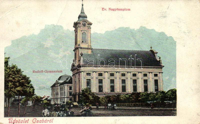 Békéscsaba Evangélikus nagytemplom, Rudolf gimnázium (EB) https://www.darabanth.com/de/177-Fernauktion/177.0/Ansichtskarten/Ungarn~3300006/Bekescsaba-Evangelikus-nagytemplom-Rudolf-gimnazium-EB~II620432
