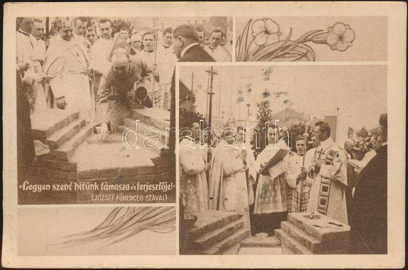 Beschreibung: Budapest XIV. a Rózsafüzér Királynéja plébánia alapkövének felszentelése 1912-ben Dr. Kohl Medárd és József főherceg által (EK)