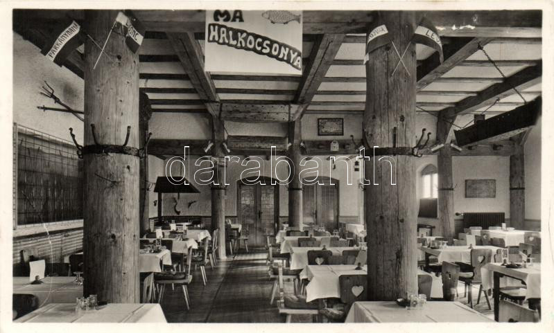 Budapest XIX. Kispest, Papp József Halásztanya éttermének belseje https://www.darabanth.com/de/177-Fernauktion/177.0/Ansichtskarten/Ungarn~3300006/Budapest-XIX-Kispest-Papp-Jozsef-Halasztanya-ettermenek-belseje~II620445