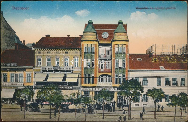 Beschreibung: Debrecen Hegedűs- és Sándor palota, Takarékszövetkezet, gyógyszertár, hitelbank, Orosz Dezső fogászata, Mihály Sámuel kereskedése