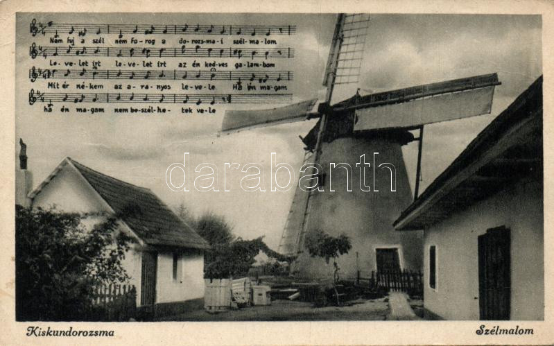 Kiskundorozsma szélmalom Dankó Pista nótájának kottájával https://www.darabanth.com/de/177-Fernauktion/177.0/Ansichtskarten/Ungarn~3300006/Kiskundorozsma-szelmalom-Danko-Pista-notajanak-kottajaval~II601194