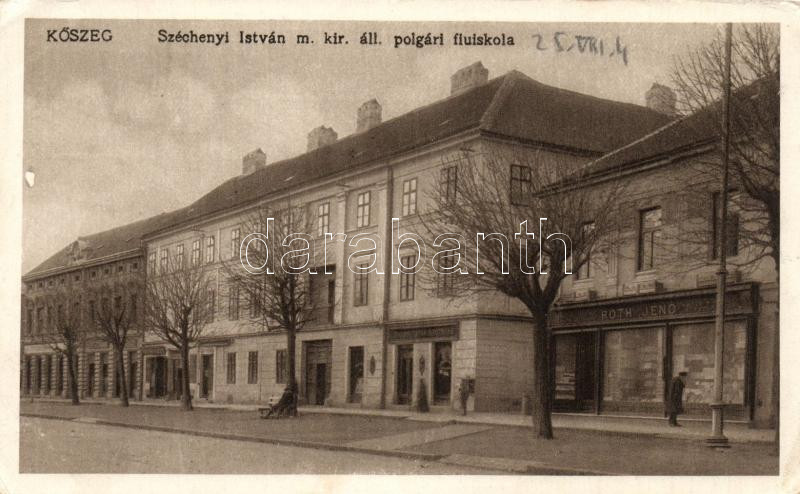 Kőszeg Széchenyi István polgári fiúiskola, Róth Jenő könyvkereskedése ... https://www.darabanth.com/de/177-Fernauktion/177.0/Ansichtskarten/Ungarn~3300006/Koszeg-Szechenyi-Istvan-polgari-fiuiskola-Roth-Jeno-konyvkereskedese-EK~II622391