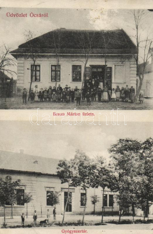 Ócsa Braun Márton üzlete, gyógyszertár (fa) https://www.darabanth.com/de/177-Fernauktion/177.0/Ansichtskarten/Ungarn~3300006/Ocsa-Braun-Marton-uzlete-gyogyszertar-fa~II622866