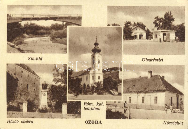 Ozora Sió híd, Hősök szobra, községháza, római katolikus templom (EK) https://www.darabanth.com/de/177-Fernauktion/177.0/Ansichtskarten/Ungarn~3300006/Ozora-Sio-hid-Hosok-szobra-kozseghaza-romai-katolikus-templom-EK~II623583