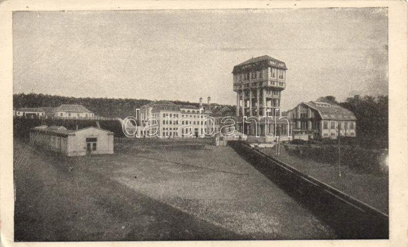 Beschreibung: Pécs Szent István aknatorony, a hátoldalon az Első Duna-Gőzhajózási Társaság kőszénbányáinak árusító hivatalának reklámja (pinhole)