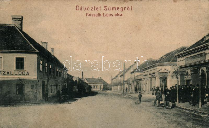 Sümeg Kossuth utca, Herczeg Esterházy malomipari kereskedése, szálloda... https://www.darabanth.com/de/177-Fernauktion/177.0/Ansichtskarten/Ungarn~3300006/Sumeg-Kossuth-utca-Herczeg-Esterhazy-malomipari-kereskedese-szalloda-non-pc~II621408