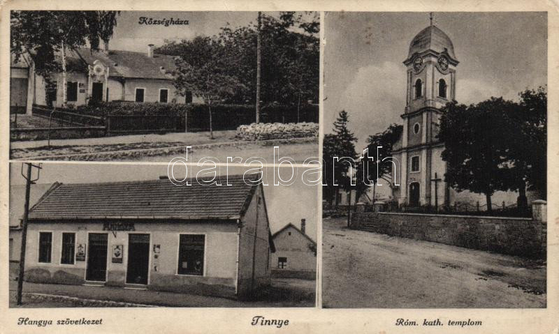 Tinnye Hangya szövetkezet, községháza, római katolikus templom (fa) https://www.darabanth.com/de/177-Fernauktion/177.0/Ansichtskarten/Ungarn~3300006/Tinnye-Hangya-szovetkezet-kozseghaza-romai-katolikus-templom-fa~II622414