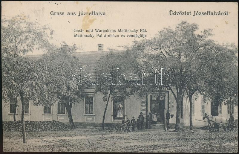 Józseffalva Pál Maitinszky's shop https://www.darabanth.com/de/177-Fernauktion/177.0/Ansichtskarten/Vojvodina~3300013/Jozseffalva-Pal-Maitinszkys-shop~II623617