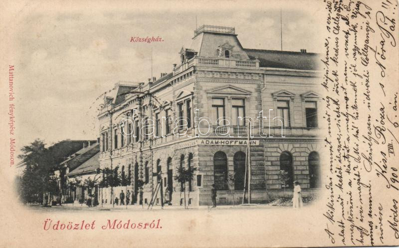 Módos town hall, the shop of Adam Hoffmann https://www.darabanth.com/de/177-Fernauktion/177.0/Ansichtskarten/Vojvodina~3300013/Modos-town-hall-the-shop-of-Adam-Hoffmann~II623139