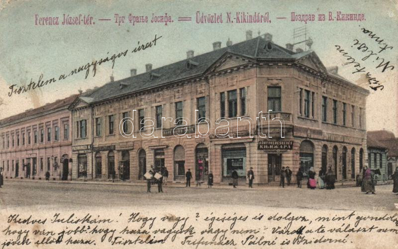 Nagykikinda Franz Joseph square, bookshop, bank (small tear) https://www.darabanth.com/de/177-Fernauktion/177.0/Ansichtskarten/Vojvodina~3300013/Nagykikinda-Franz-Joseph-square-bookshop-bank-small-tear~II622474