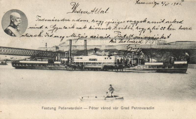 Beschreibung: Újvidék Pétervárad, steamship, Franz Joseph