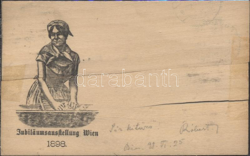 1898 Jubiläumsausstellung Wien / The anniversary exhibition in Vienna,... https://www.darabanth.com/de/177-Fernauktion/177.0/Ansichtskarten/Werbungen~3300102/1898-Jubilaumsausstellung-Wien-The-anniversary-exhibition-in-Vienna-wooden-card-b~II616282