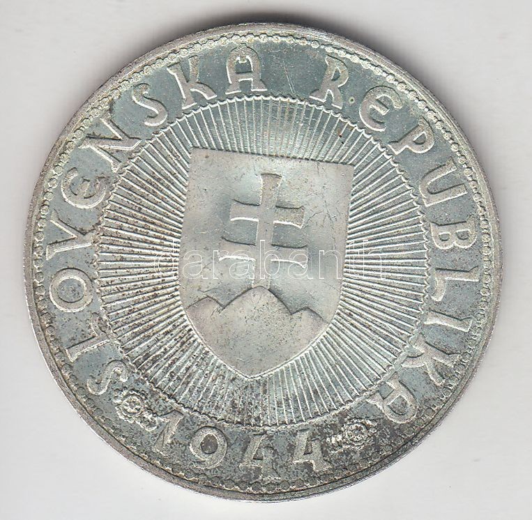 Slovakia 1944. 10 Koruna Ag C:XF https://www.darabanth.com/de/177-Fernauktion/177.0/Numismatik/Auslandische-Munzen~3300033/Szlovakia-1944-10K-Ag-T2-3Cbr3ESlovakia-1944-10-Koruna-Ag-CXF~II623524