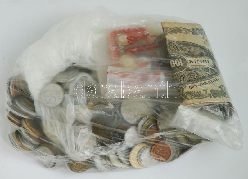 Beschreibung: 1,2kg vegyes fémpénz régebbi és közte 5db nagyméretű érme hamisítványa + 1957. 1Ft T:3, 1812. 1/2Kr T:3-, 1816. 1Kr T:3-, 1851. 1Kr + 4db jelvény, közte Vöröskereszt + 5db vegyes bankjegy T:vegyes