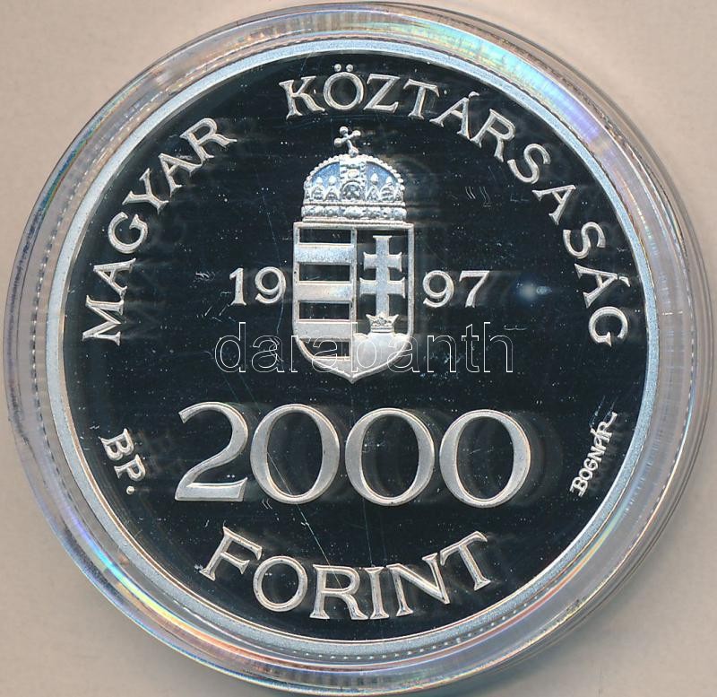 Beschreibung: 1997. 2000Ft Ag "Integráció az EU-ba-EURO I" T:PP Dísztokban, tanúsítvánnyal