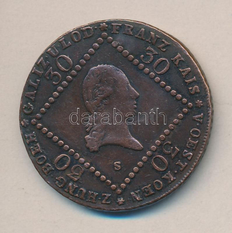 Ausztria/magyar verdejel 1807S 30Kr T:2- ü. https://www.darabanth.com/de/177-Fernauktion/177.0/Numismatik/Ungarische-Munzen~3300029/Ausztriamagyar-verdejel-1807S-30Kr-T2-u~II621363