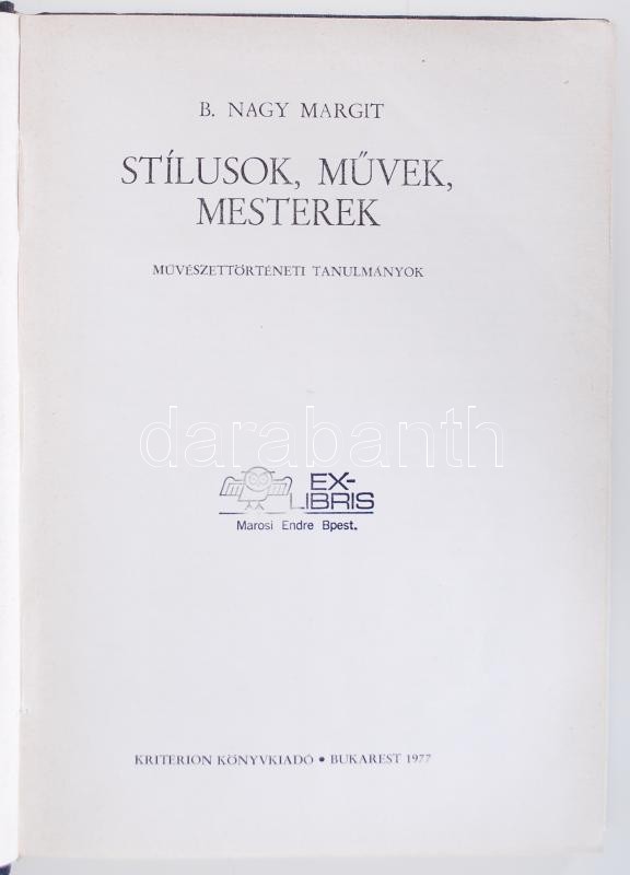 B. Nagy Margit: Stílusok, művek, mesterek. Bukarest, 1977, Kriterion. ... https://www.darabanth.com/de/178-Fernauktion/178.0/Andere-Sammelgebiete/Bucher-Architektur-Kunst~600017/B-Nagy-Margit-Stilusok-muvek-mesterek-Bukarest-1977-Kriterion-Kiadoi-egeszvaszon-kote~II629140