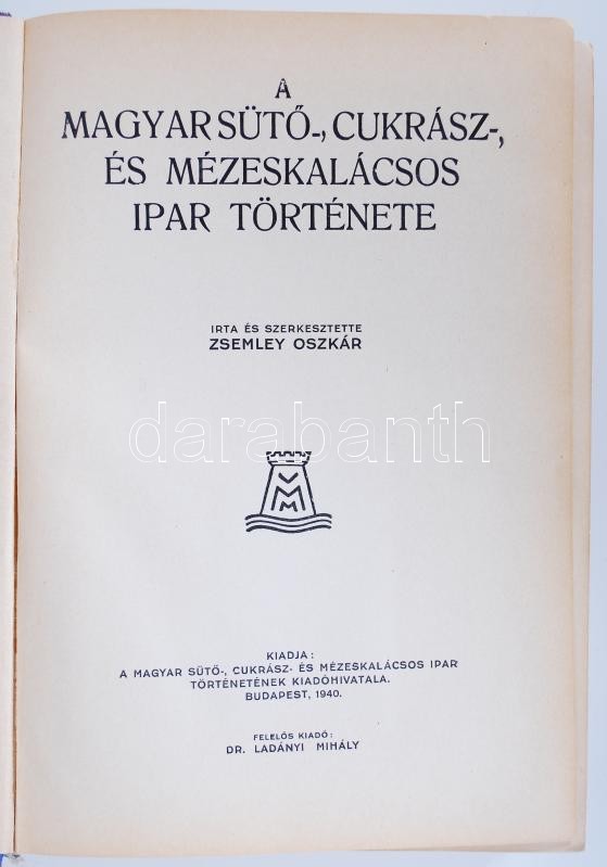 Zsemley Oszkár: A magyar sütő-, cukrász- és mézeskalácsos ipar története. Bp., 1940, A Magyar Sütő-, Cukrász- és Mézeskalácsos Ipar Történetének Kiadóhivatala. Kissé megkopott, a gerincen sérült, aranyozott egészvászon kötésben