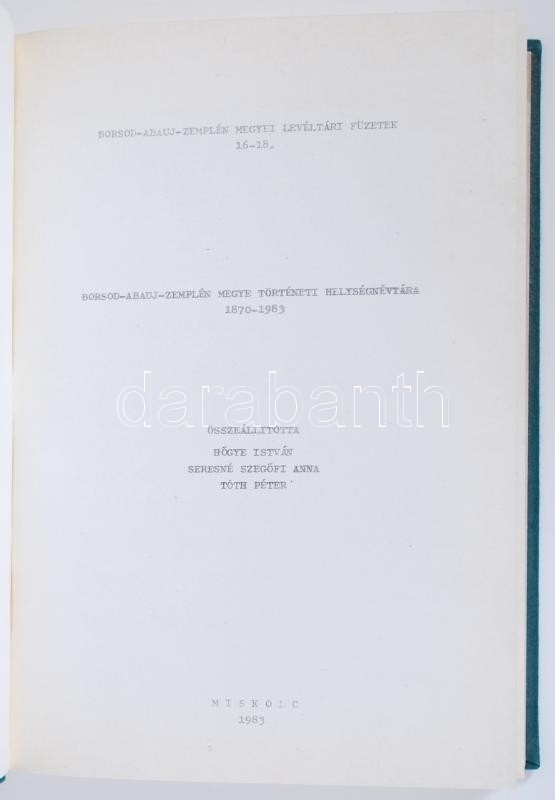 Borsod-Abauj-Zemplén megye történeti helységnévtára 1870-1983. Összeál... https://www.darabanth.com/de/178-Fernauktion/178.0/Andere-Sammelgebiete/Bucher-Reisen-Stadte~600012/Borsod-Abauj-Zemplen-megye-torteneti-helysegnevtara-1870-1983-Osszeall-Hogye-Istvan-Ser~II626110