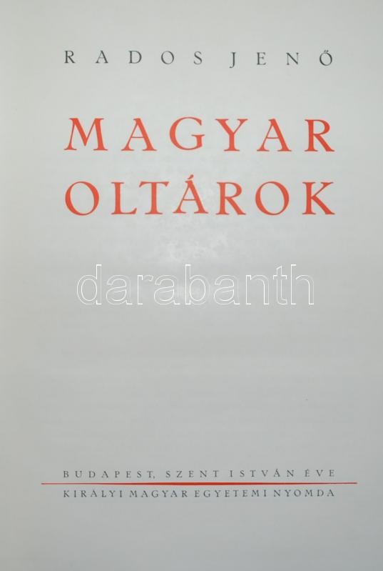 Rados Jenő: Magyar Oltárok. Budapest 1938. Királyi Magyar Egyetemi Nyo... https://www.darabanth.com/de/178-Fernauktion/178.0/Andere-Sammelgebiete/Bucher-Religion~600023/Rados-Jeno-Magyar-Oltarok-Budapest-1938-Kiralyi-Magyar-Egyetemi-Nyomda-Sok-keppel-jo-alla~II588127