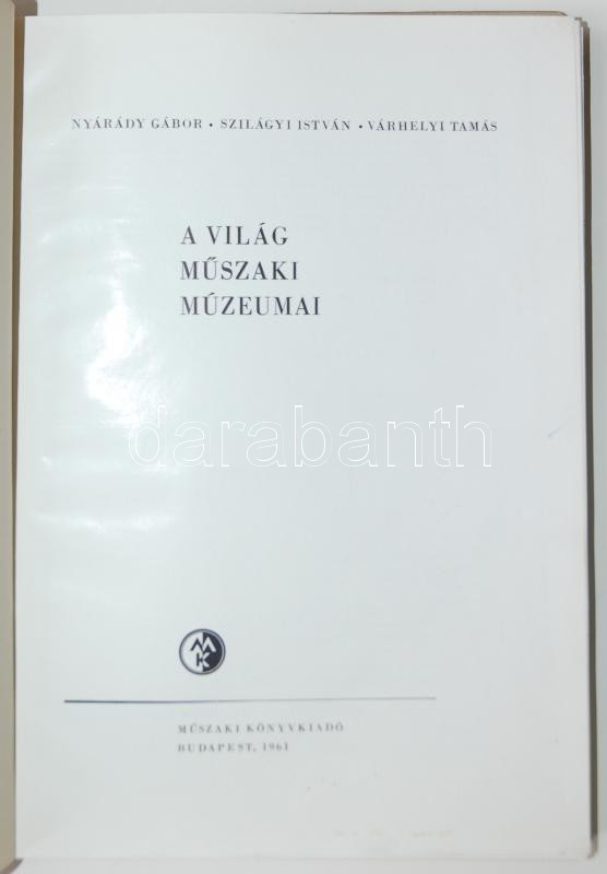 Nyárády, Szilágyi, Várhelyi: A világ műszaki múzeumai. Budapest 1961. ... https://www.darabanth.com/de/178-Fernauktion/178.0/Andere-Sammelgebiete/Bucher-Sonstige-Raritaten~600045/Nyarady-Szilagyi-Varhelyi-A-vilag-muszaki-muzeumai-Budapest-1961-Muszaki-Konyviado~II615663