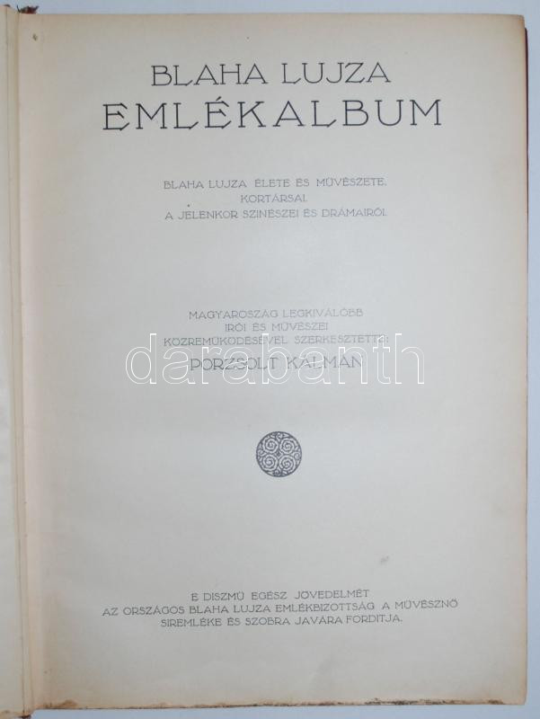 Porzsolt Kálmán: Blaha Lujza élete és művészete. Budapest. 1926. Blaha... https://www.darabanth.com/de/178-Fernauktion/178.0/Andere-Sammelgebiete/Bucher-Sonstige-Raritaten~600045/Porzsolt-Kalman-Blaha-Lujza-elete-es-muveszete-Budapest-1926-Blaha-Lujza-Emlekalbum-KiadC3~II579447