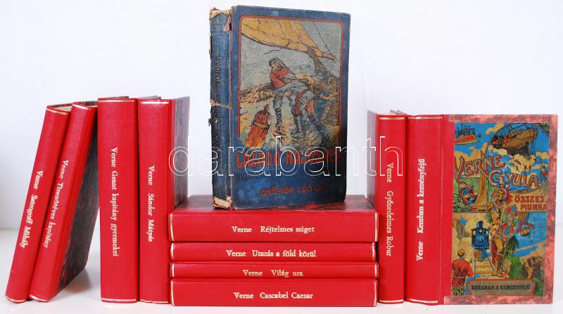 Verne Gyula összes munkái. Bp., én. Franklin társulat Festett egészvászon kötésben, gerinc mind egységesen pótolva összesen 10 db könyv + Györök Leó: Lázadó hajósnép. Gerinc sérült