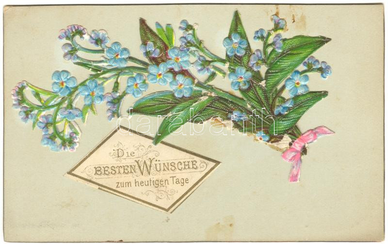 Beschreibung: 1886 "Die Besten Wünsche" feliratú, üdvözlőkártya virág díszítéssel