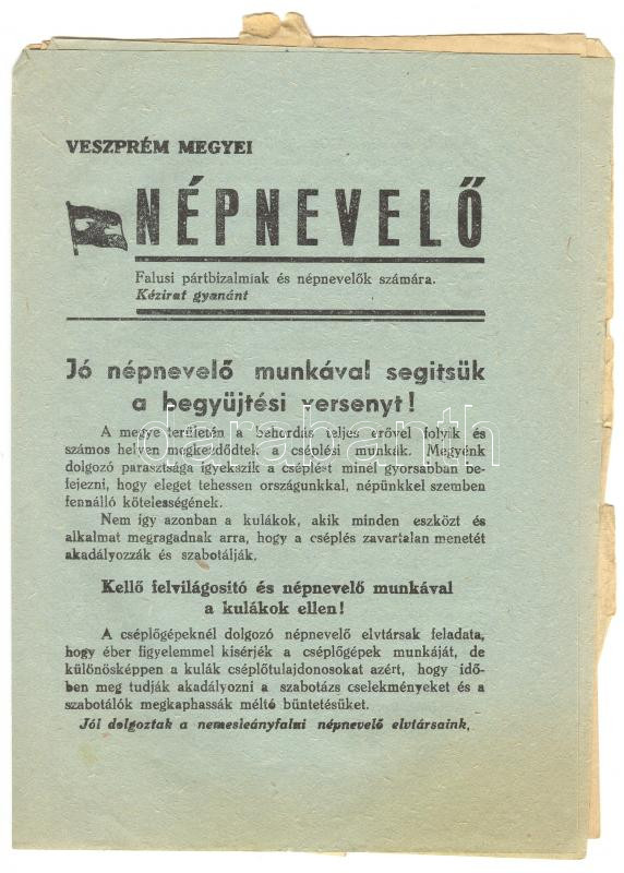 1949 Veszprém Megyei Népnevelő. Falusi pártbizalmiak és népnevelők szá... https://www.darabanth.com/de/178-Fernauktion/178.0/Andere-Sammelgebiete/Drucksachen~600010/1949-Veszprem-Megyei-Nepnevelo-Falusi-partbizalmiak-es-nepnevelok-szamara-Erdekes-tema~II624754