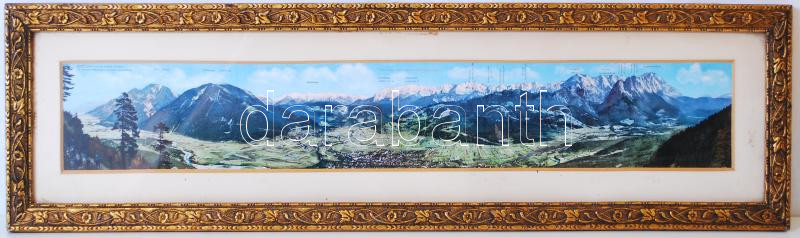 Beschreibung: Antik gazdagon díszített fa keret, nagyméretű képeslappal, 17×64 cm
