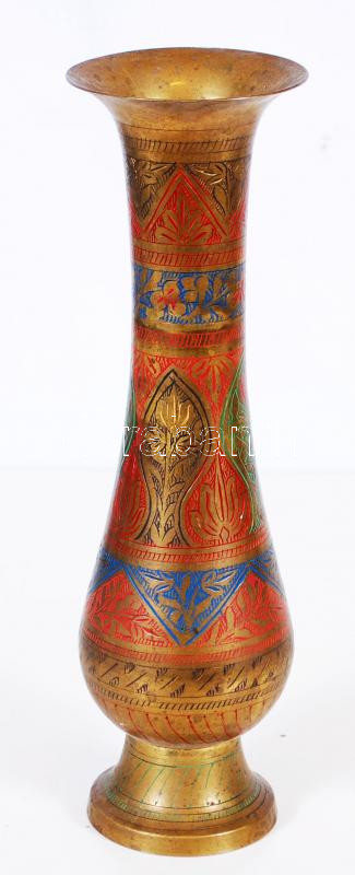 Beschreibung: Indiai vésett színezett réz váza /