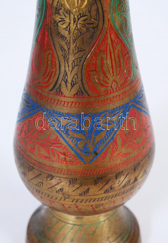 Indiai vésett színezett réz váza /