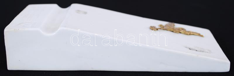 Beschreibung: Kő asztali tolltartó a Kőszénbanya és Téglagyár Társulat Pesten reklámjával 19x10 cm